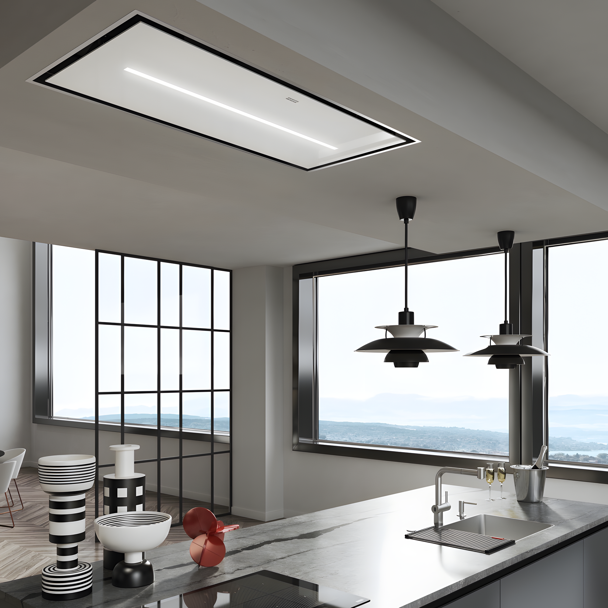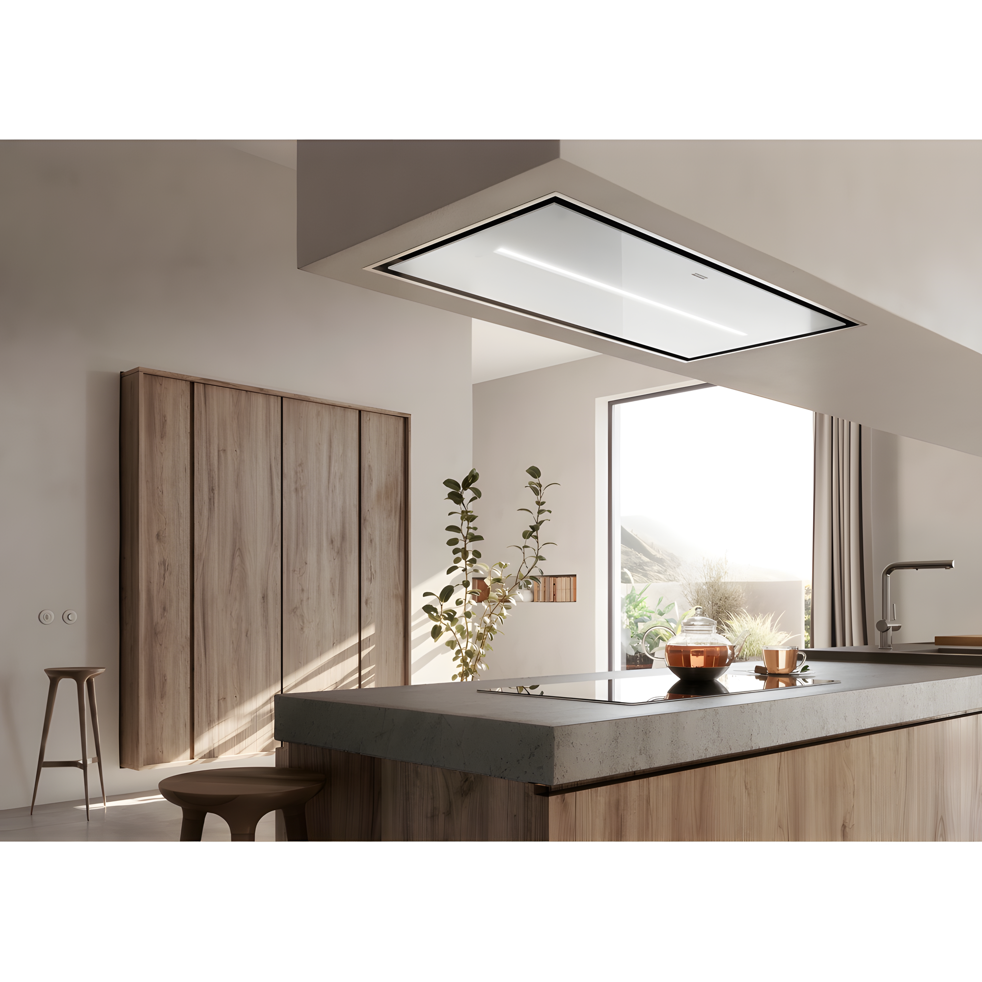 A Coifa Air Hub, número de artigo 350.0679.885, é uma coifa de embutir com acabamento em vidro preto e aço inox, alta capacidade de extração e design flush totalmente integrado ao mobiliário, desenvolvida para eliminar vapores e odores com eficiência e sofisticação em cozinhas modernas.