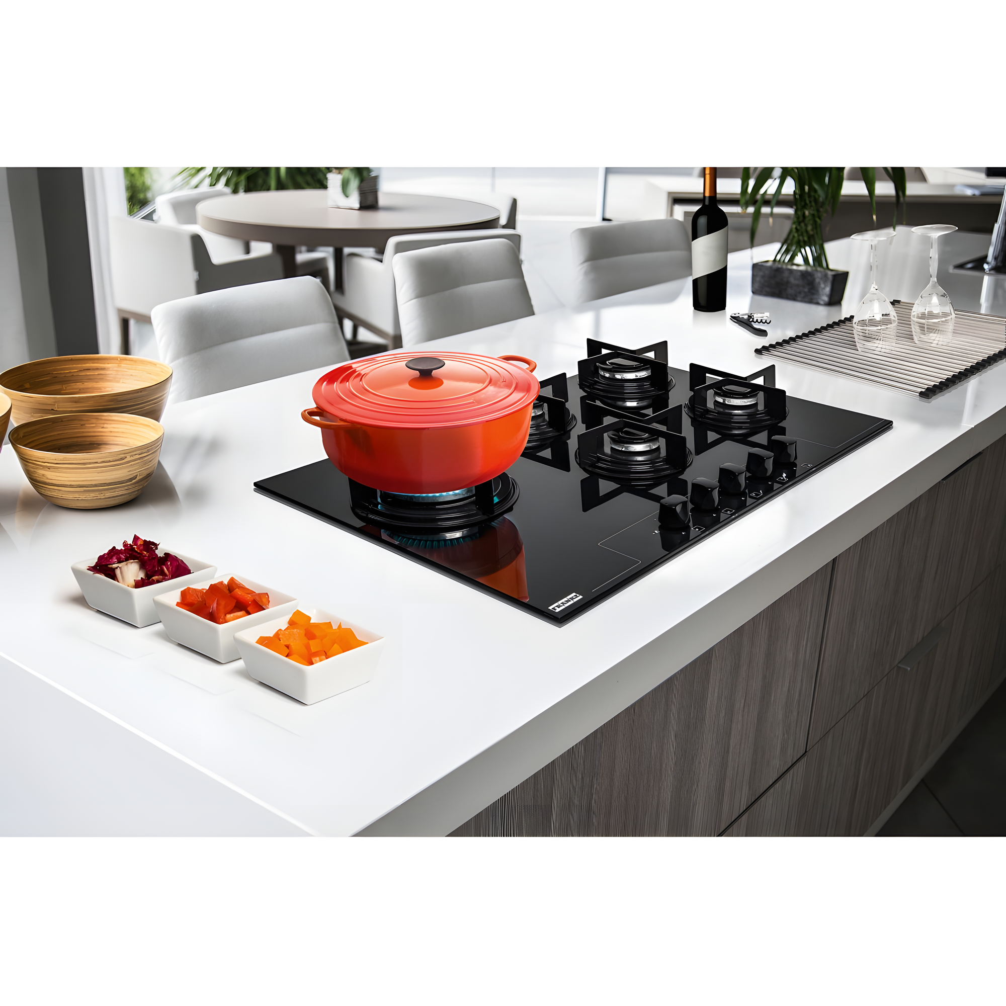 O Cooktop Glass Tripla Chama 75cm Preto, código 106.0389.267, é um cooktop a gás com mesa em vidro preto e cinco queimadores, incluindo queimador tripla chama de alta potência, projetado para oferecer desempenho superior, controle preciso da chama e design moderno para cozinhas contemporâneas Franke.