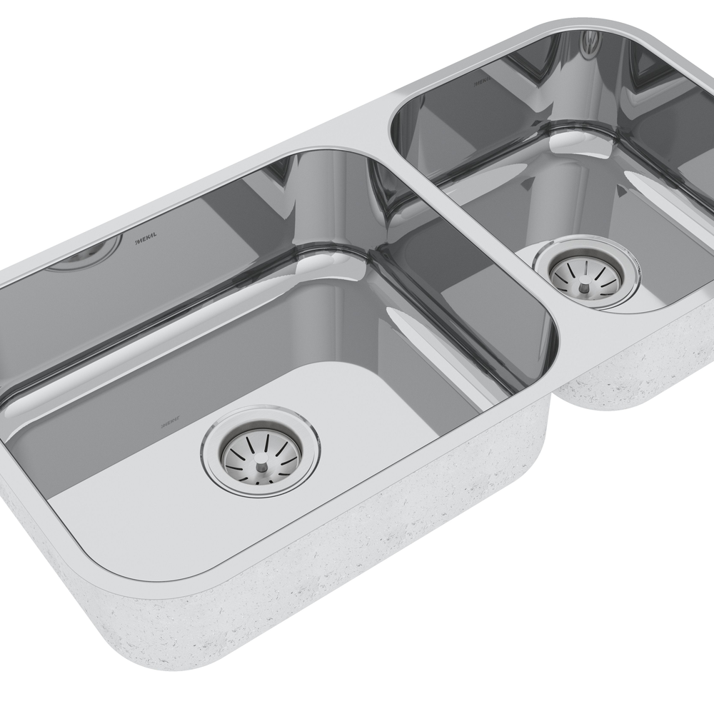 Cuba dupla em aço inox com excelente aproveitamento de bancada e