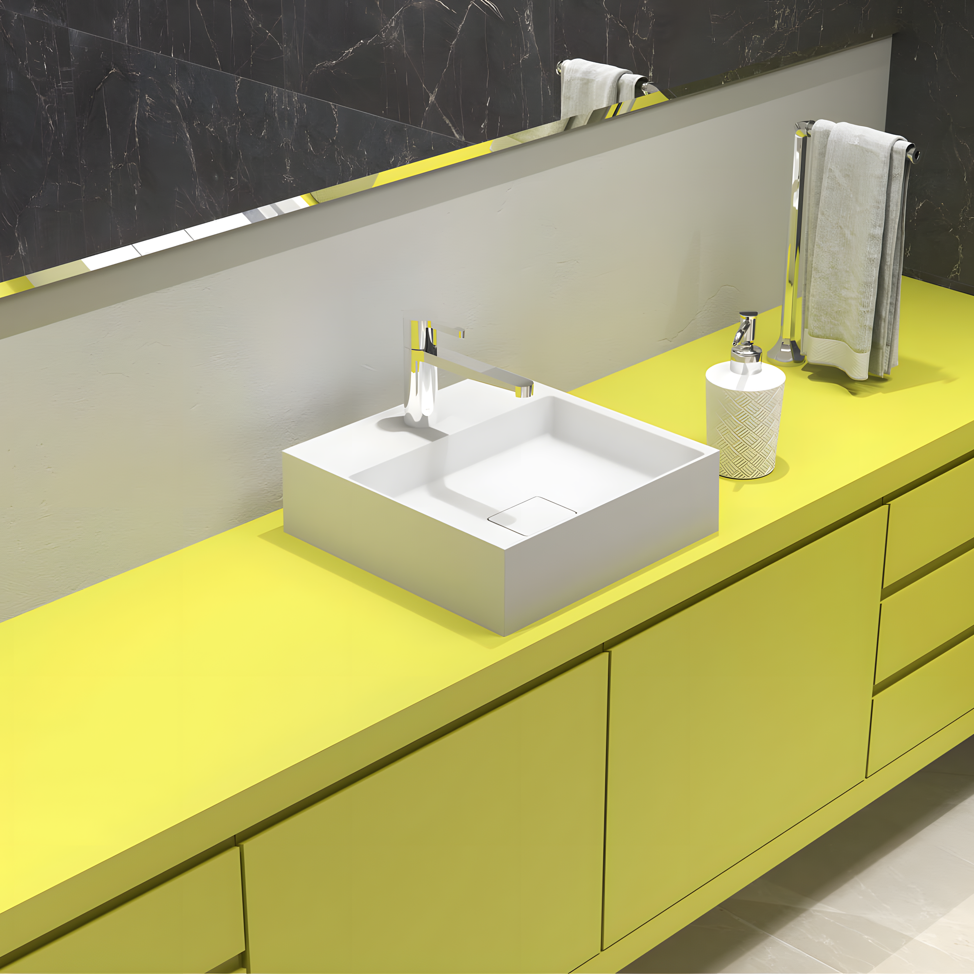 A Cuba Esquadro 40 faz parte da coleção Esquadro, caracterizada por sua geometria pura e bordas expressivas finas, criando formas esteticamente equilibradas e elegantes. Essa peça de apoio — com tamanho generoso dentro da linha de cubas — é versátil e se adapta a diversos estilos de banheiro ou lavabo, funcionando como elemento decorativo e funcional que agrega suavidade ao ambiente sem perder a praticidade do uso cotidiano.