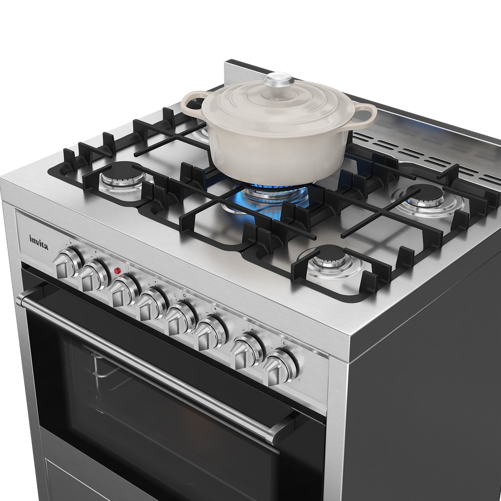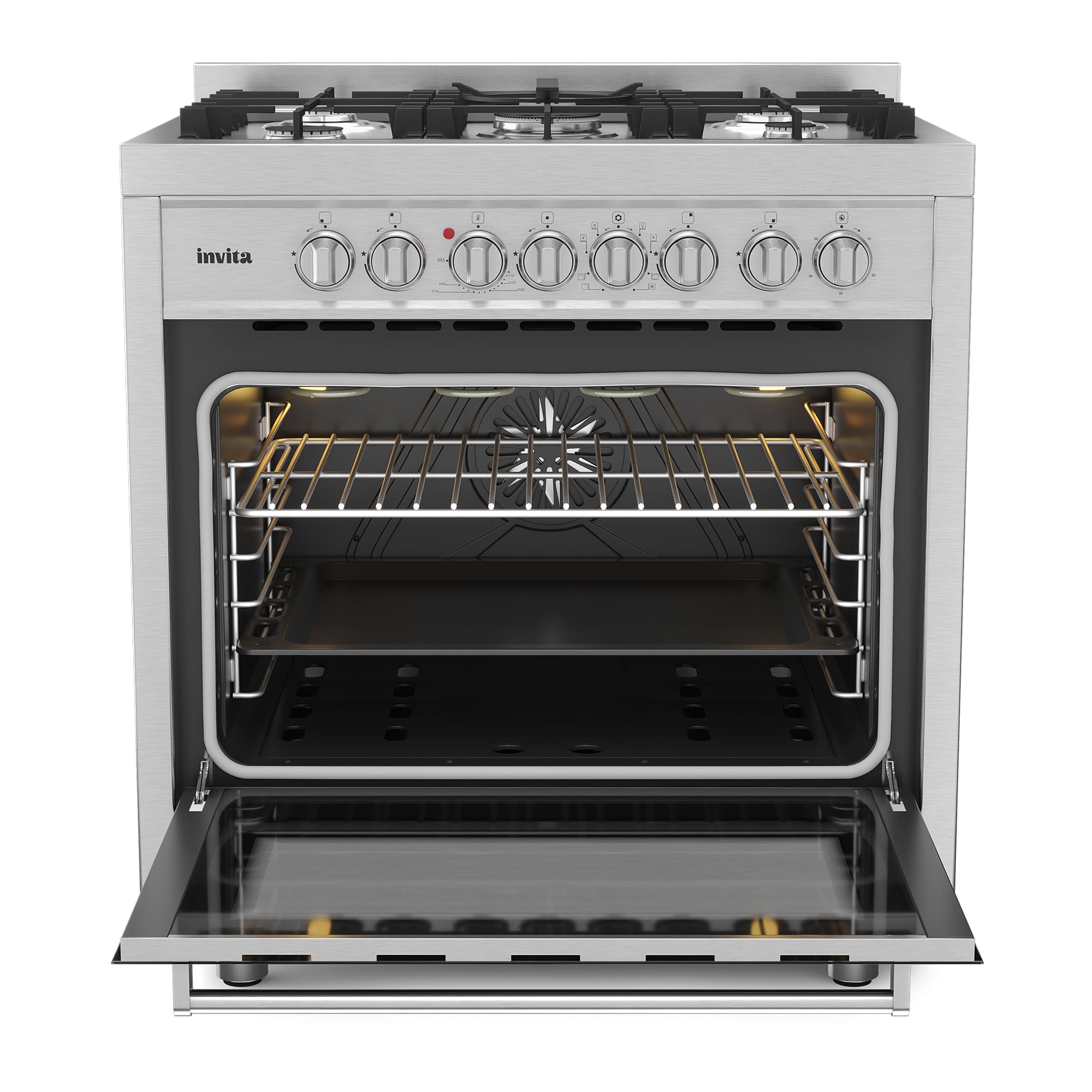 O Fogão de Piso Invita Gás/Elétrico 75 cm foi desenvolvido para quem busca alto desempenho, sofisticação e praticidade em espaços compactos. Possui mesa a gás com 5 queimadores Defendi, incluindo um potente Dual Flame de 4 kW, garantindo rapidez e precisão no preparo das refeições. As trempes em ferro fundido oferecem maior estabilidade, durabilidade e segurança. O forno elétrico conta com motor de convecção multifunção, 8 funções de aquecimento, capacidade de 92 litros e porta com vidro triplo, proporcionando melhor retenção de calor e eficiência térmica. O acabamento em aço inox valoriza o ambiente, enquanto a instalação freestanding oferece liberdade no projeto da cozinha. Compatível com GLP e GN, é a escolha ideal para quem exige desempenho e elegância.