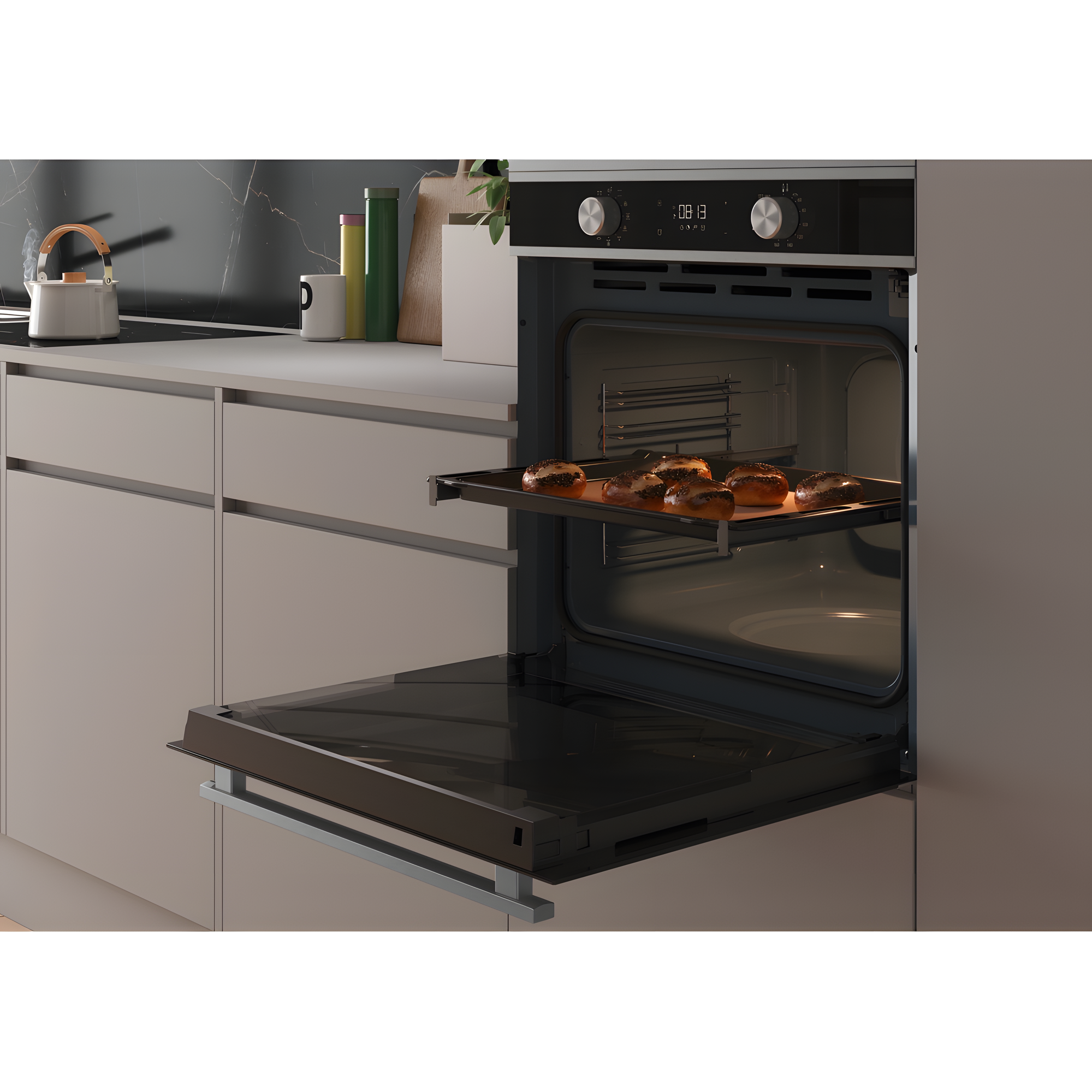 O Forno Maris FSM 97 P XS, número de artigo 116.0606.096, foi desenvolvido para proporcionar desempenho elevado e máxima praticidade no preparo de alimentos, combinando tecnologia avançada com acabamento elegante em aço inox e vidro. Com capacidade interna de 71 litros, permite preparar grandes receitas ou múltiplos pratos simultaneamente com excelente distribuição de calor. O modelo conta com sistema de limpeza pirolítica, que utiliza altas temperaturas para transformar resíduos em cinzas, facilitando a manutenção e eliminando a necessidade de limpeza manual intensiva. Possui interface com display e controle por sensores e manípulos, oferecendo ajuste preciso das funções e do tempo de preparo. O forno dispõe de diversas funções, incluindo cocção convencional, convecção, grill, turbo grill, programa para pizza, função pão e programas automáticos, proporcionando versatilidade para diferentes tipos de receitas. A porta com vidro triplo, sistema de fechamento suave e guias telescópicas aumentam a segurança e o conforto durante o uso. Com eficiência energética classe A+ e potência nominal de 3300 W, este forno oferece alto desempenho, economia de energia e integração perfeita com projetos de cozinha modernos Franke.