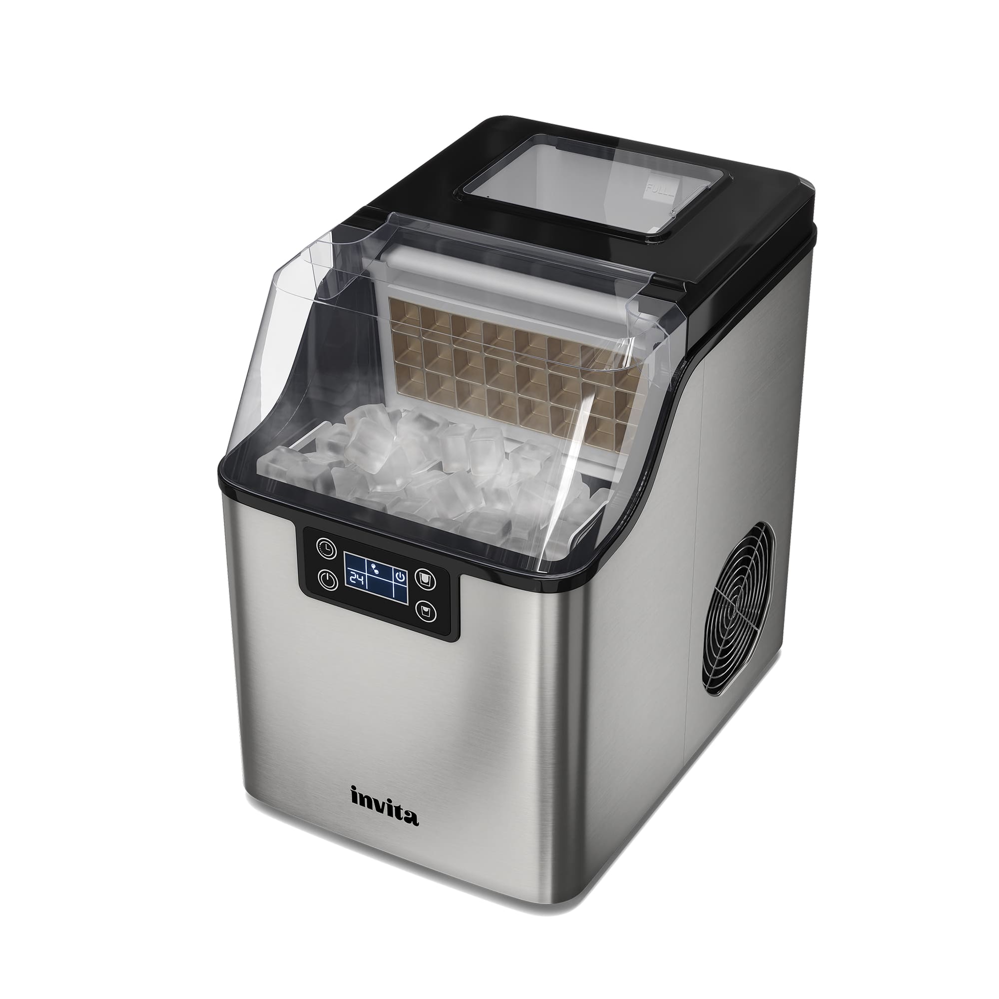 O Ice Maker Invita Portátil Inox é a solução ideal para quem busca praticidade, desempenho e design moderno na produção de gelo. Capaz de produzir até 20 kg de gelo por dia, entrega 24 cubos a cada 20 minutos, com três opções de tamanho: pequeno, médio e grande. Seu sistema de abastecimento permite uso manual com água potável ou conexão direta à rede hidráulica. Possui reservatório de água de 3,2 litros, cesto com capacidade para até 1,2 kg de gelo, dreno manual e sensores de falta de água e cesto cheio. O sistema autolimpante garante mais higiene e praticidade no uso diário. Com comando soft touch, display com timer, acabamento em aço inox e instalação freestanding, está disponível nas versões 127 V e 220 V, sendo ideal para residências, áreas gourmet e ambientes corporativos.