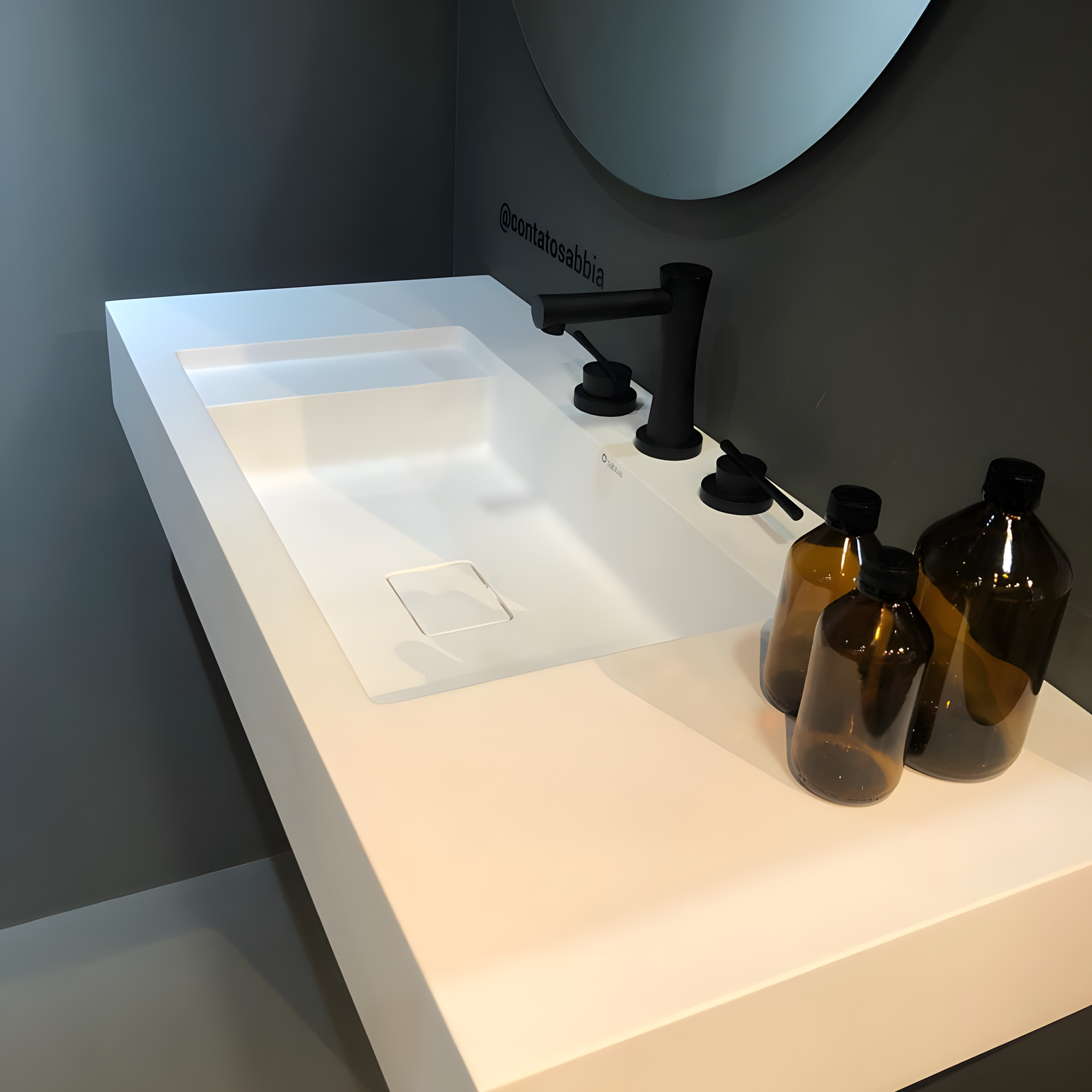 Tecnologia: Duramatt — material Solid Surface com acabamento fosco acetinado, superfície resistente, não porosa e de fácil limpeza.