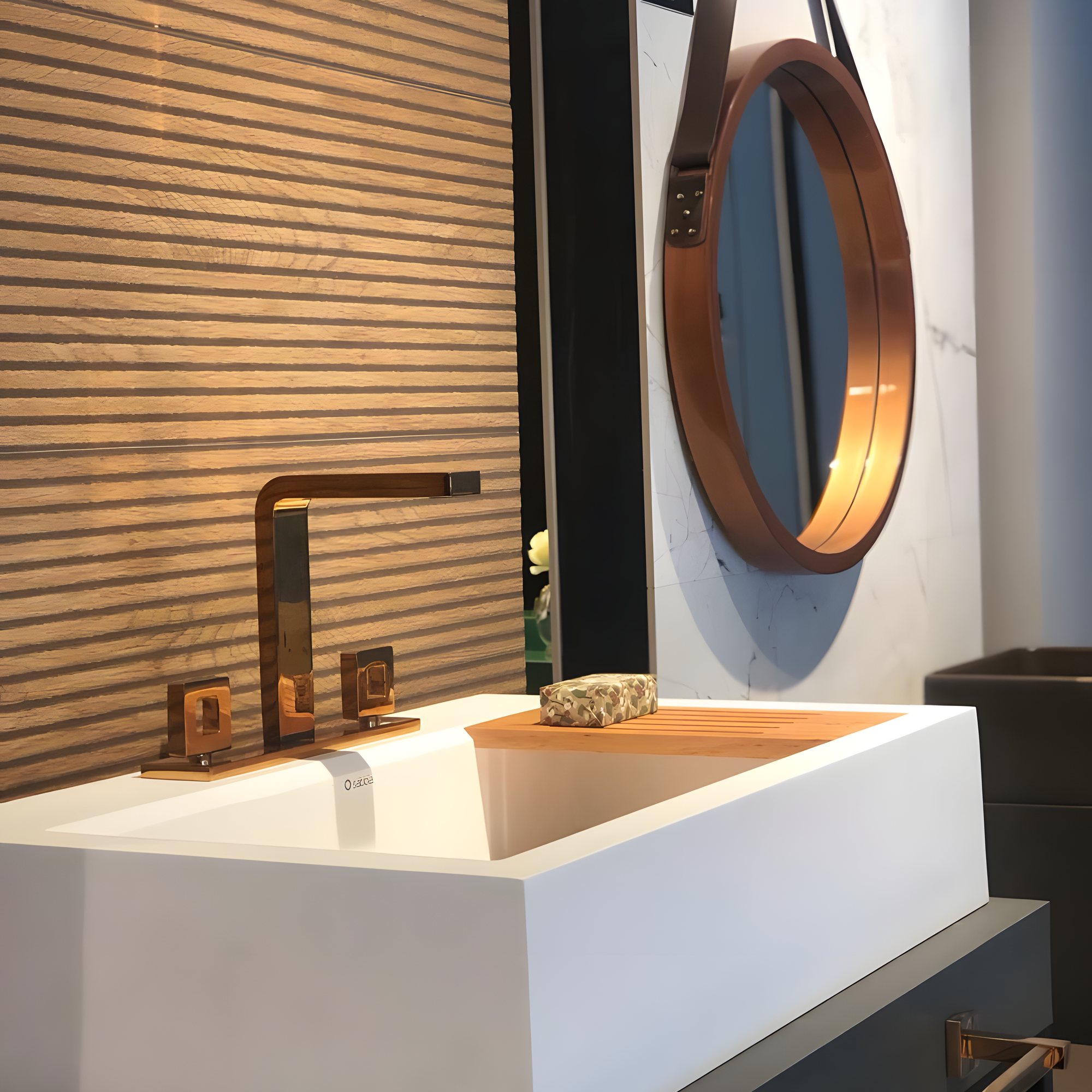 O Lavatório Tibet 70 reúne tudo o que um bom projeto de banheiro ou lavabo exige: design sofisticado, funcionalidade no uso diário e charme visual. Seu acabamento artesanal ressalta as linhas bem definidas da peça, e a possibilidade de adicionar uma bandeja de madeira como apoio para cosméticos ou objetos decorativos contribui com funcionalidade extra e um toque de personalidade. Ideal para quem busca uma peça que seja ao mesmo tempo prática e esteticamente marcante.
