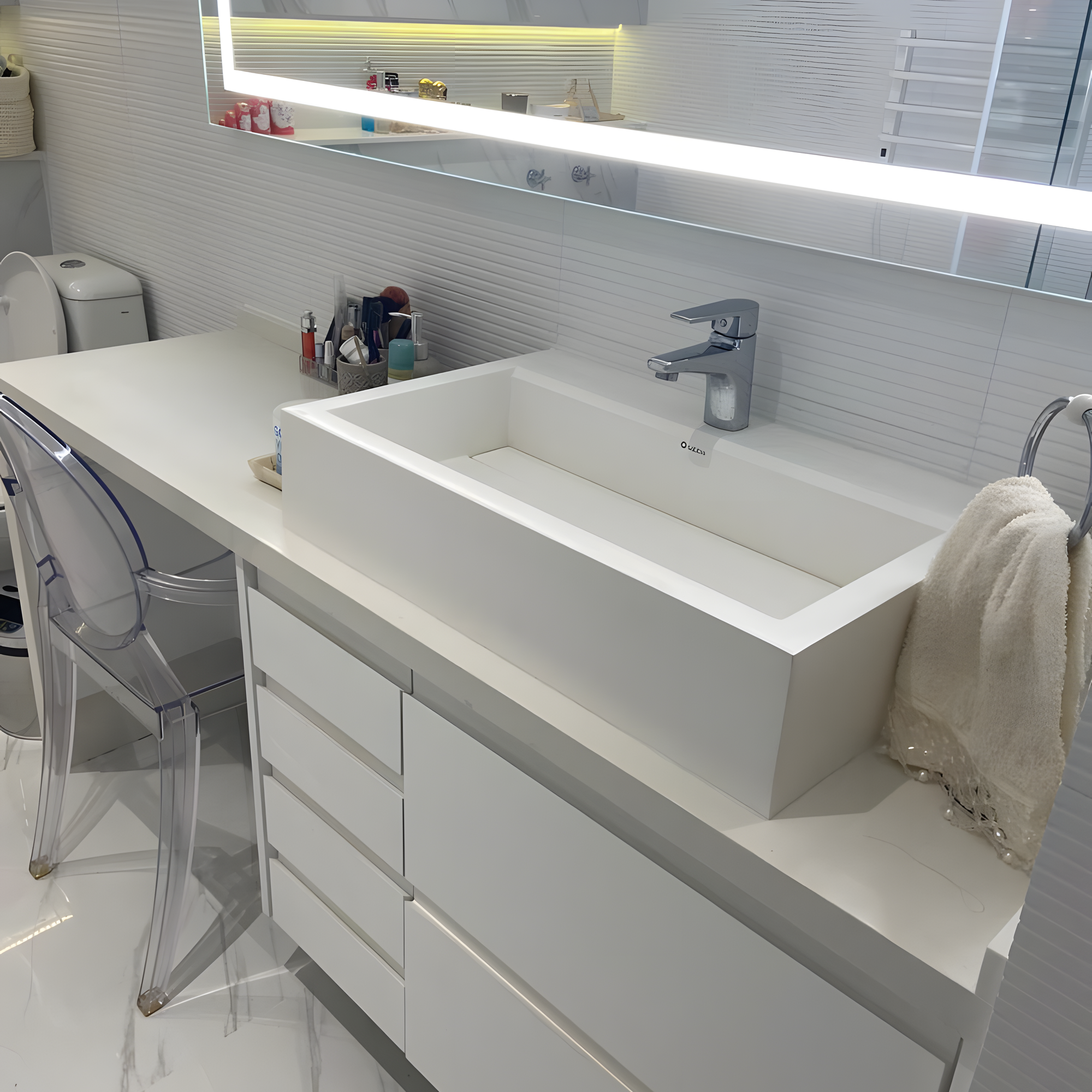Tecnologia: Duramatt — material Solid Surface com acabamento fosco acetinado, superfície resistente e fácil de limpar / manter.