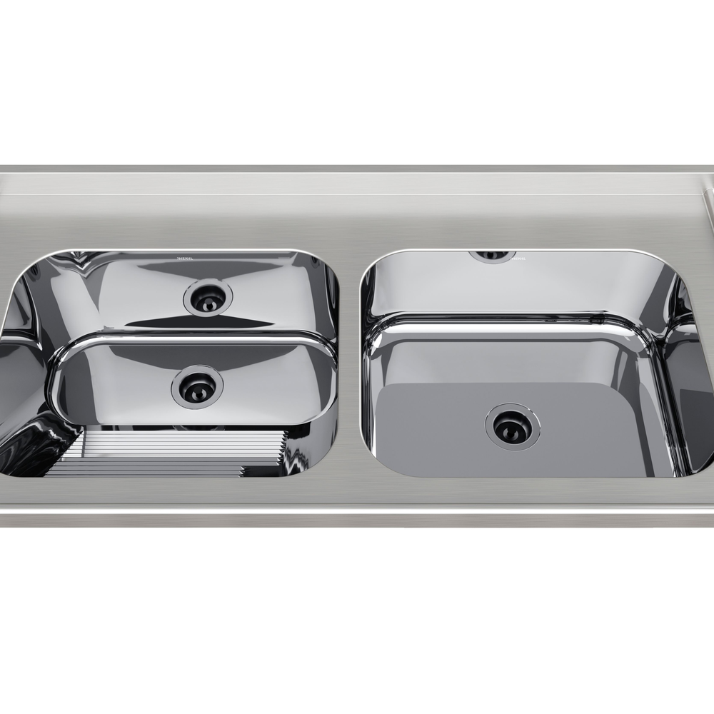 Tanque em aço inox com cuba de molho integrada, ideal para lavand